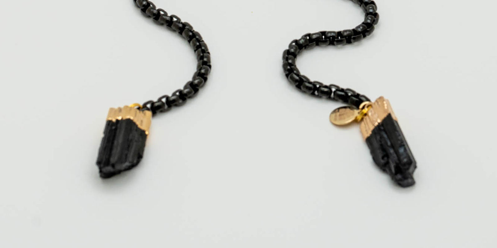 Square plastic frames.Gunmetal chain. Gunmetal plated clear quartz arrowheads.